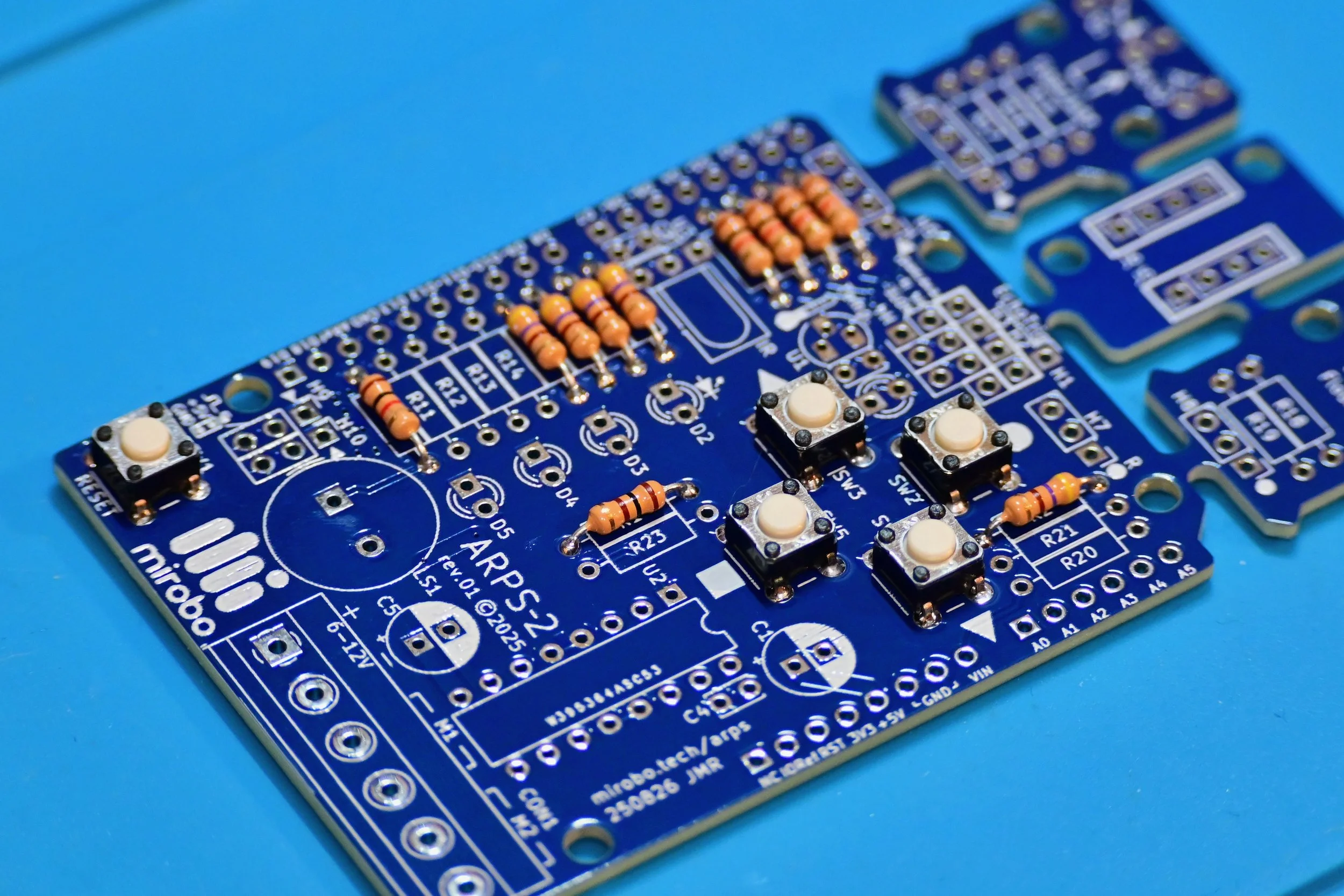 At this point, the assembly of ARPS-2 is complete! Carefully remove ARPS-2 from your Arduino, then inspect all of its solder connections. Fix any poor solder connections or solder shorts between component leads. Clean the circuit board using the recommended flux remover for the type of solder used during assembly, and allow the PCB to fully dry before testing your circuit.
