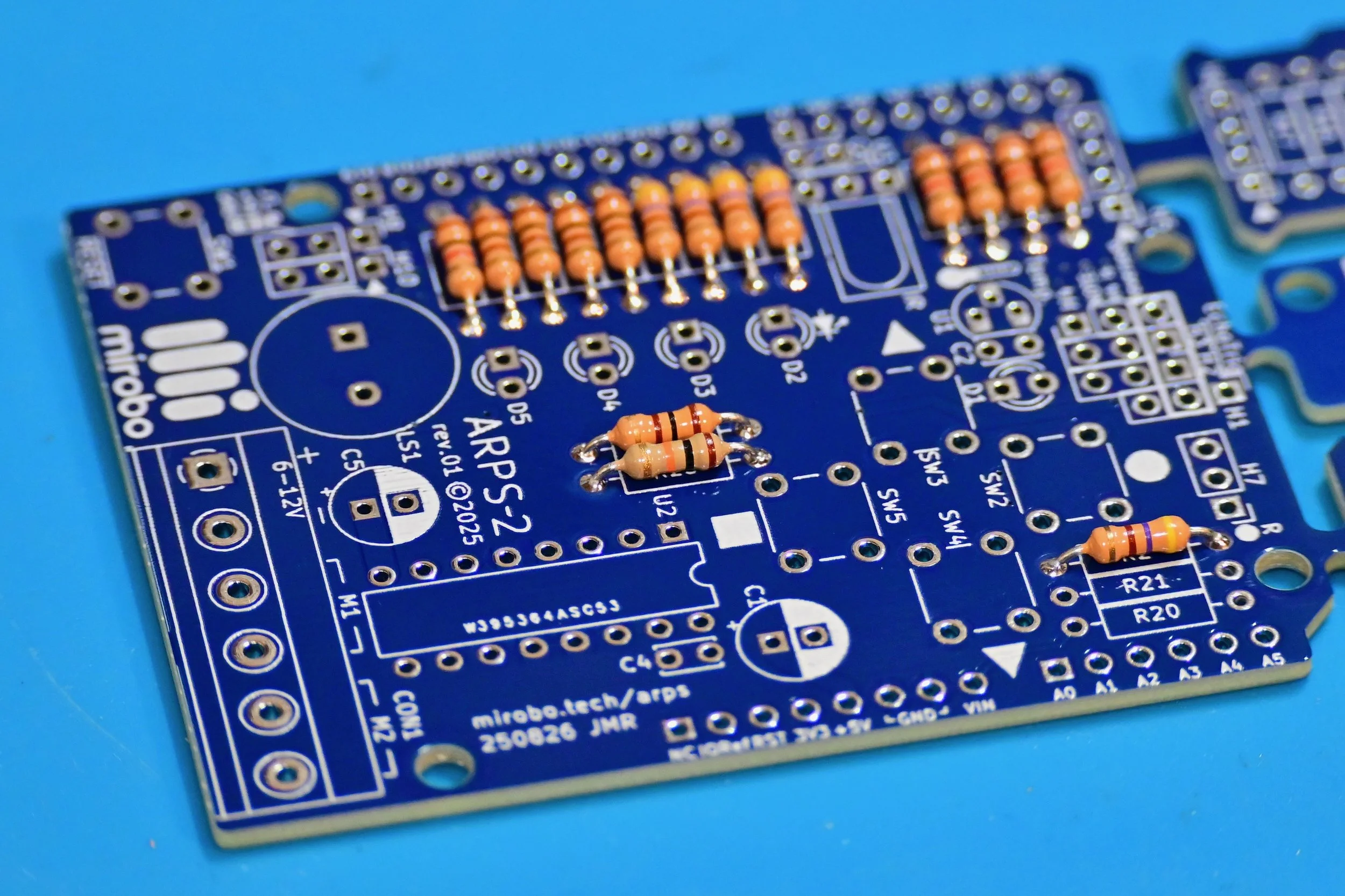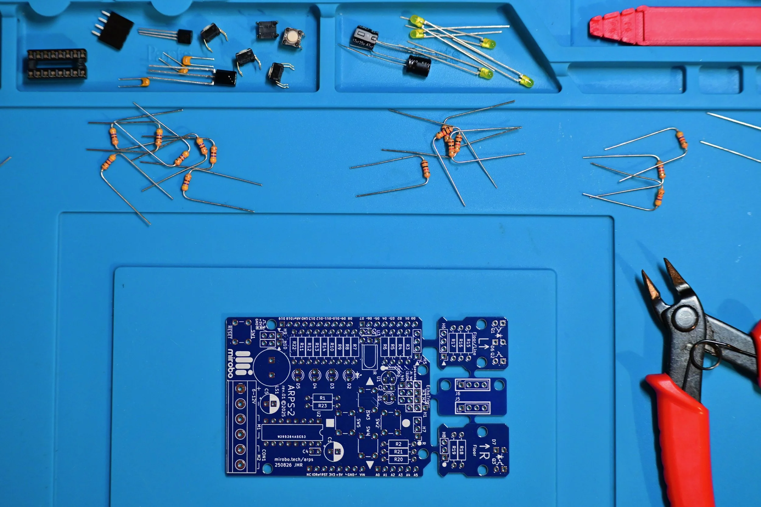 Use the parts list, linked above, to verify that you have all of the required electronic components, or to order the components you need if you have obtained a bare ARPS-2 printed circuit board.