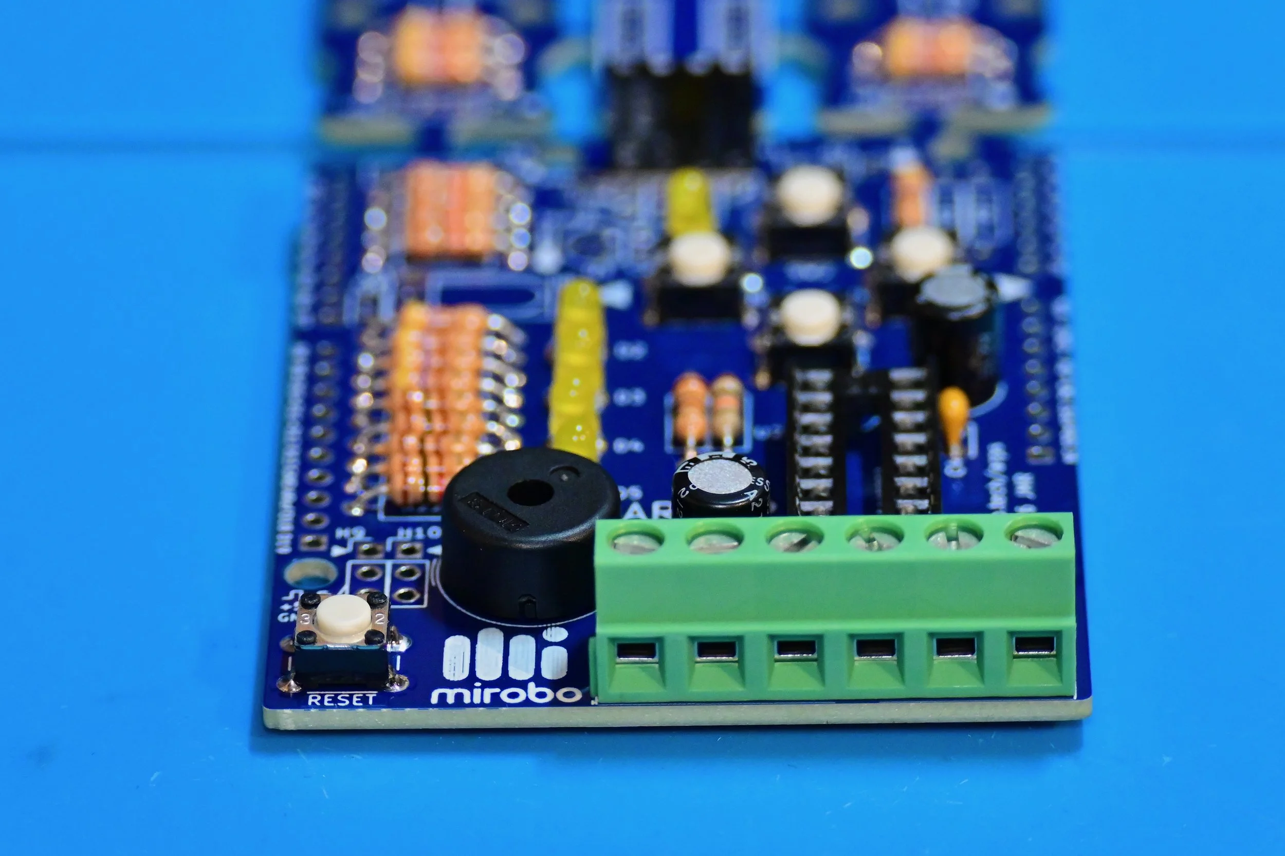 (Note: in this configuration you’ll need to decide how to populate headers H1 - H4 to support any additional sensors your robot might need. Installing a 4-pin header socket makes it easy to mount an HC-SR04 SONAR module directly on-board, while installing header pins makes connecting external I/O devices or the extension header PCB easier.)