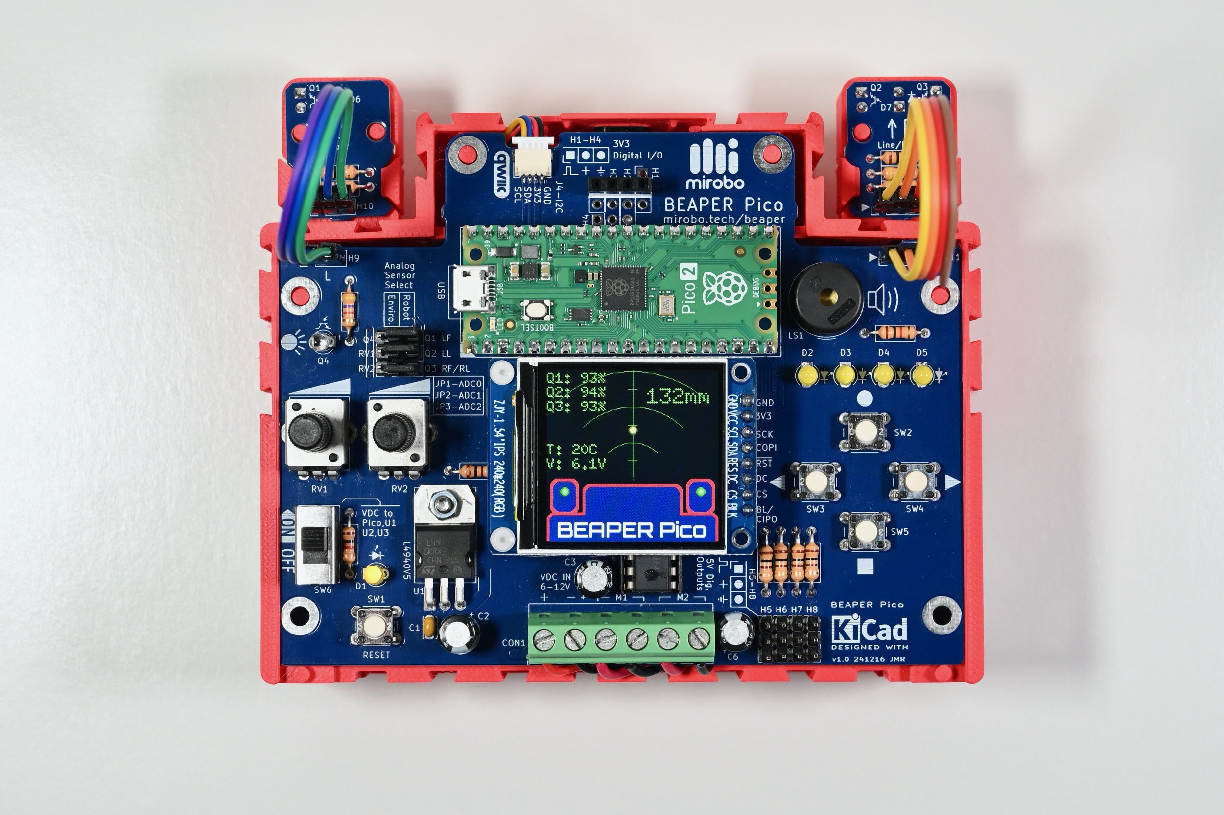 Raspberry Pi Pico microcontrollers are less expensive, have more I/O pins (though fewer analog-capable pins), and are very well supported with lots of MicroPython programming examples, making BEAPER Pico an excellent choice for beginners.